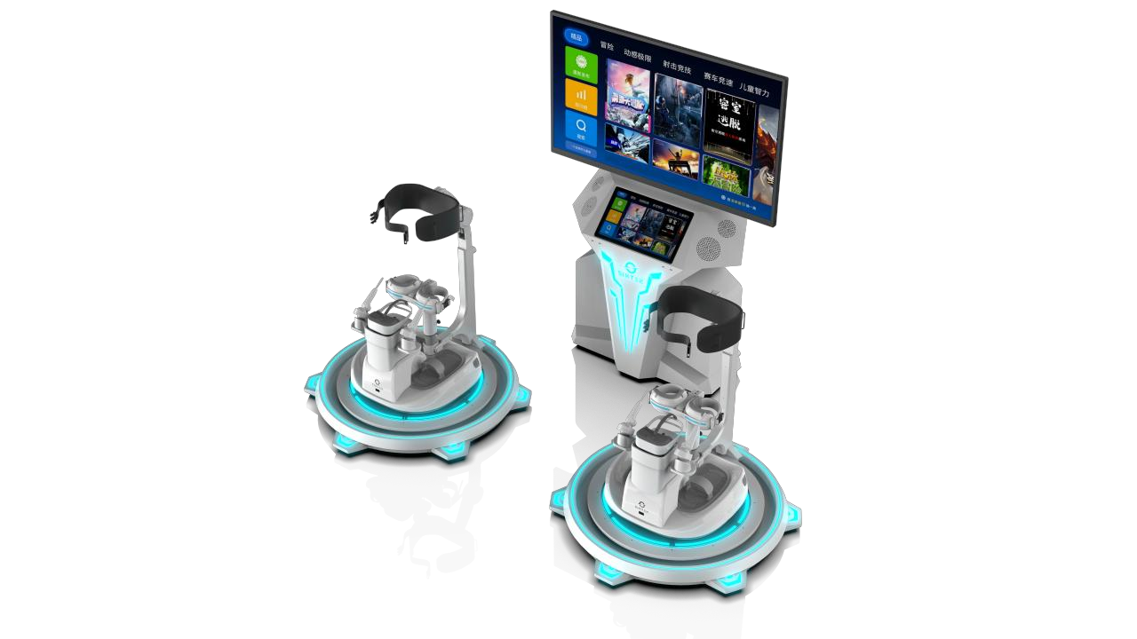 Each platform is independently powered, allowing for smooth, natural movement through leg-based controls — forward, backward, side-to-side, and full 360° rotation. Compact and visually striking, the setup is designed to draw in attention and keep users engaged with 13 pre-installed, high-playability VR games.
