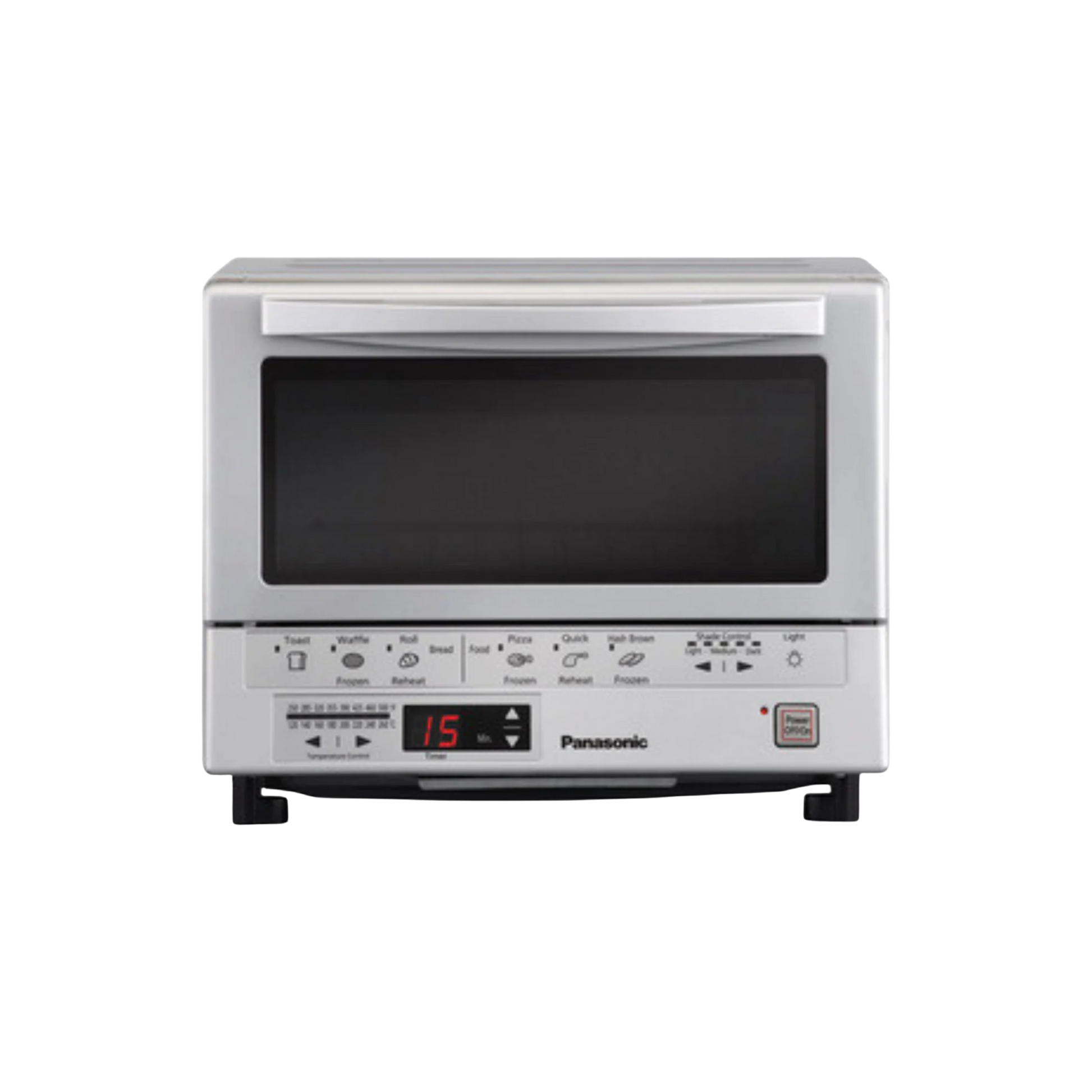 The Panasonic FlashXpress Toaster Oven (Model: NB-G110P) with Double Infrared Heating technology delivers perfectly cooked meals with no preheating required! Designed with both near and far infrared heating, this toaster oven ensures efficient cooking by heating the outside while penetrating the food for even results, all within a fraction of the time.